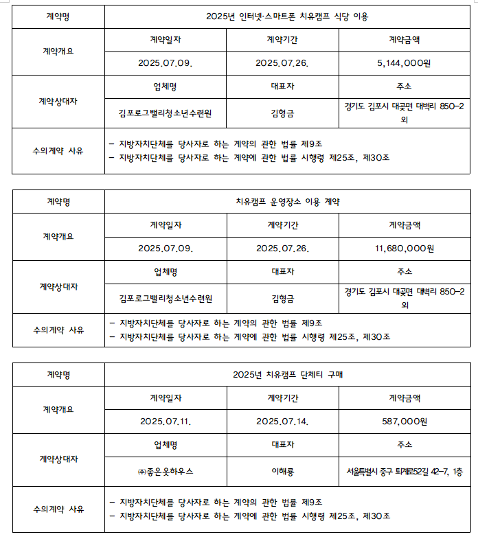 시립마포인터넷중독예방상담센터 강서사무소에서 2025년 7월 진행한 수의계약 결과를 아래와 같이 공개합니다.