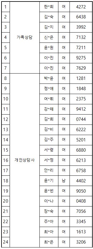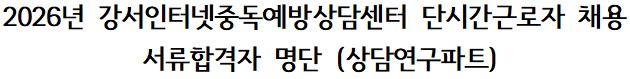 2026년 강서인터넷중독예방상담센터 단시간근로자 채용 서류합격자 명단(상담연구파트)