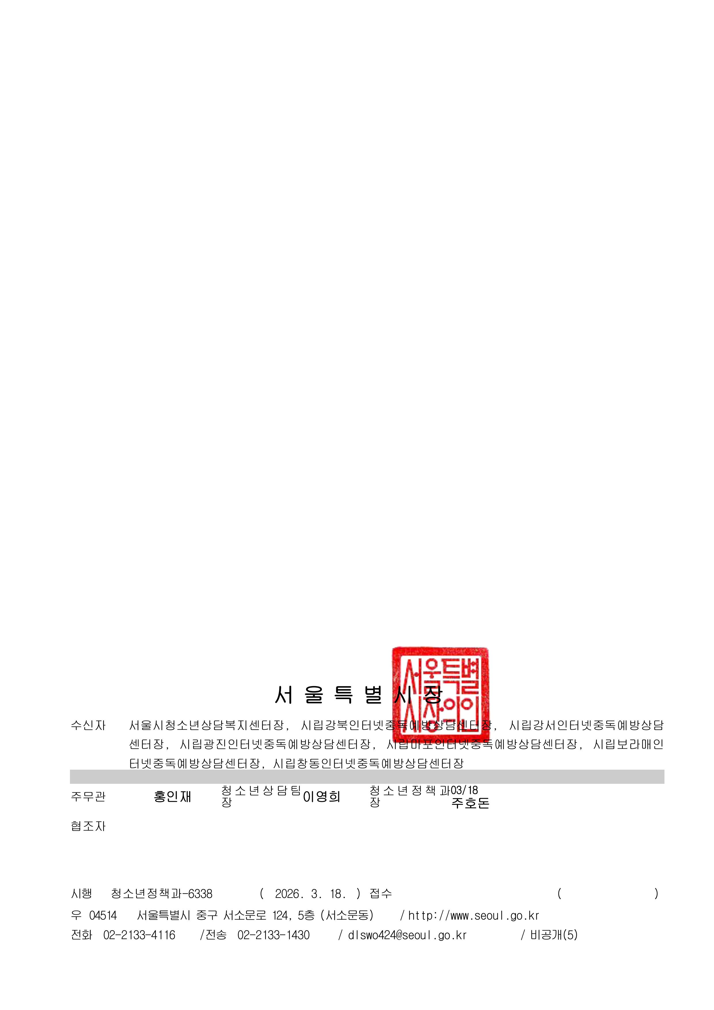 2026 인터넷스마트폰 치유캠프 위촉상담사(개인상담) 채용 공고
