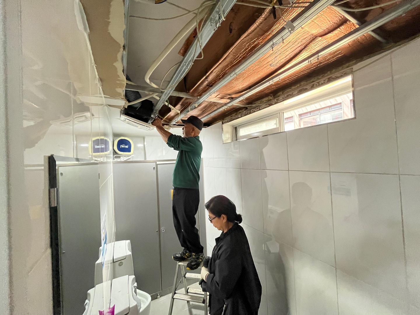 10월 5일(수) 부터 10월 12일(수)까지 일주일동안 여름철 수해피해로 누수되었던 별관 교육실, 화장실 천장 보수 및 방수 공사를 실시하였습니다. 앞으로도 이용자들이 안전하게 이용할 수 있도록 만전을 기하겠습니다.