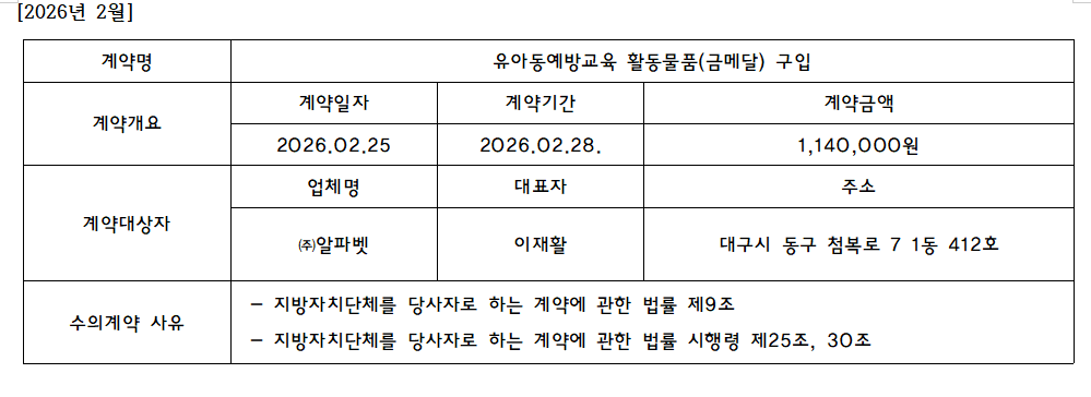 2026년 2월 수의계약 내역 공개