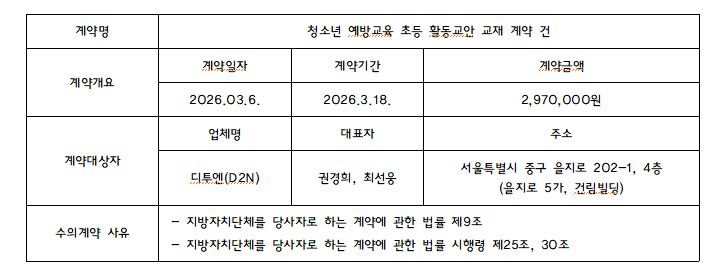 월 진행한 수의계약 결과를 아래와 같이 공개합니다.